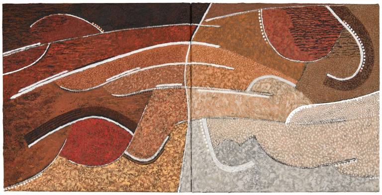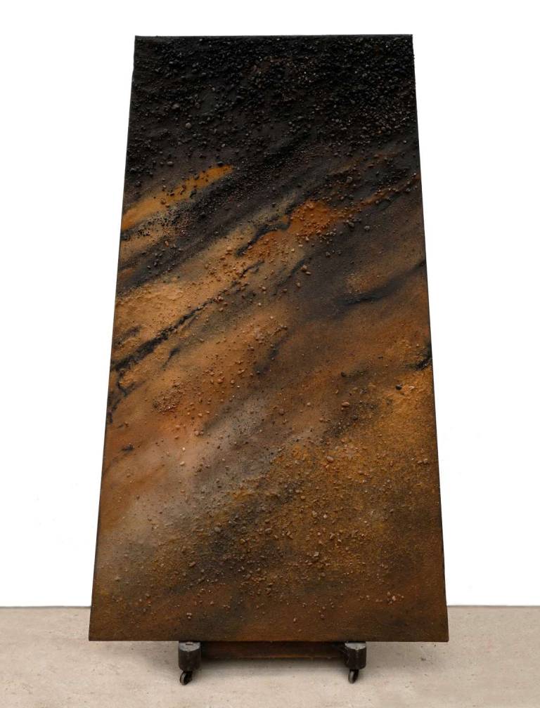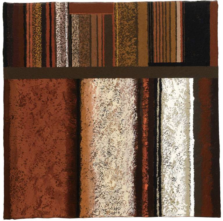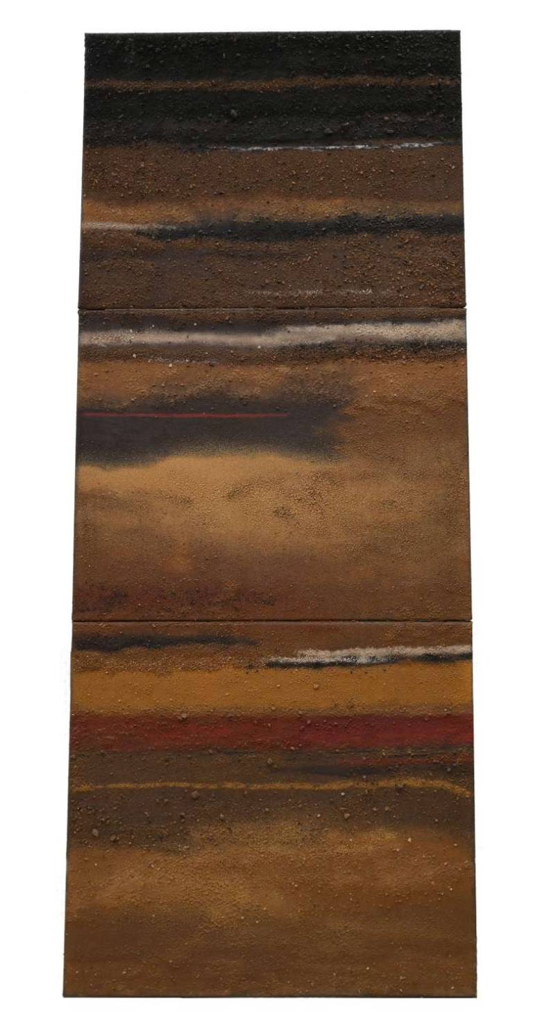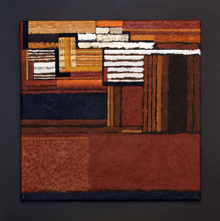 John painted throughout the seasons reflecting the changing colours of the Sussex countryside. Continually searching and pushing the boundaries, his work has evolved through many different permutations into his current abstract style using a restricted range of earth pigments.