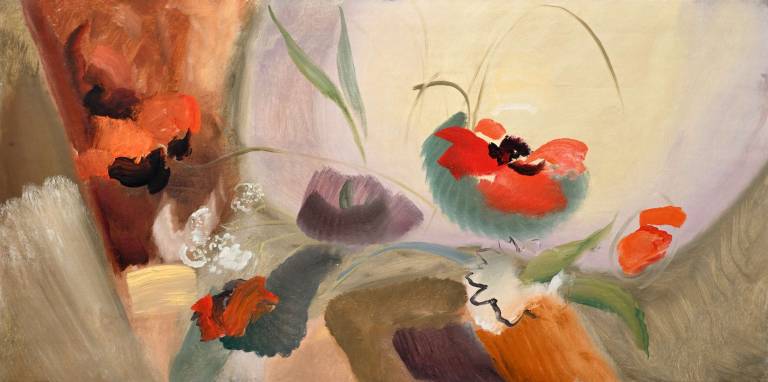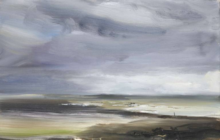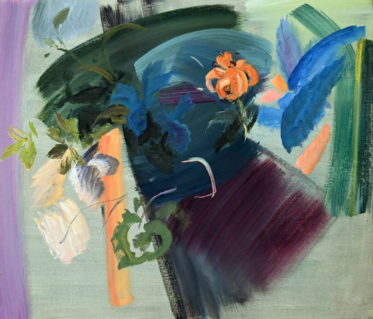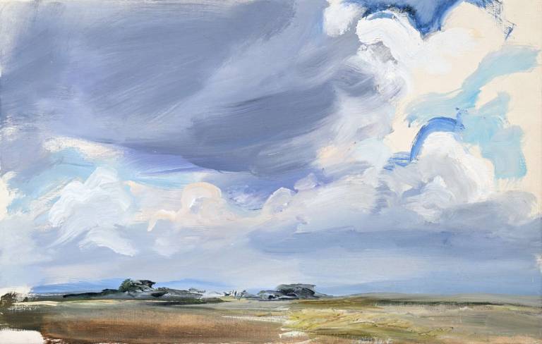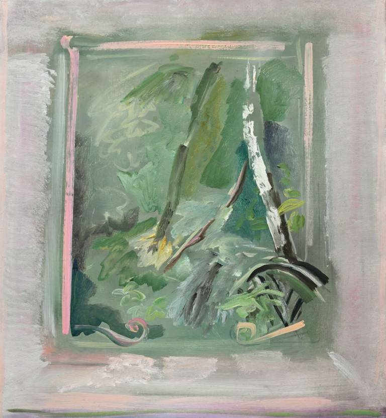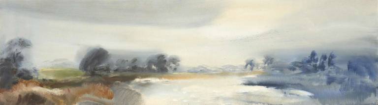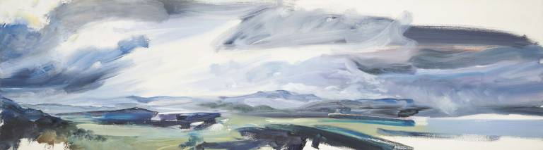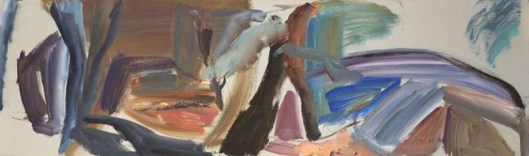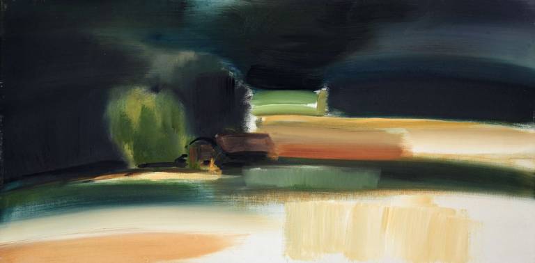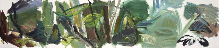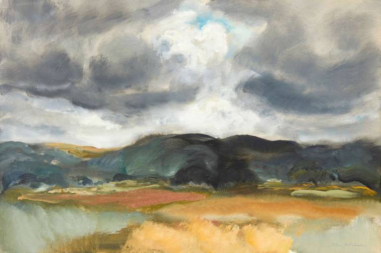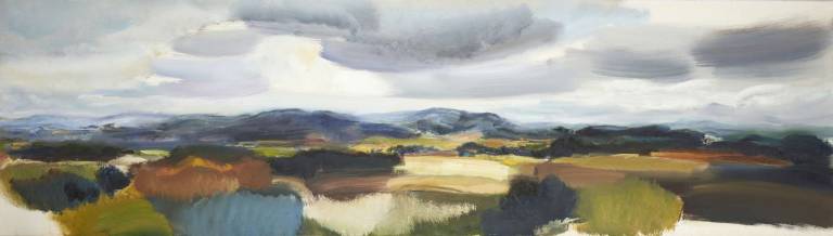 The sky, open space and changing weather fronts become principal motifs for John. After 1975 his work departed from an emphasis on the sky, he gradually realised that the sky, for so long the starting point for the mood of a painting, had in fact become a limitation. He was searching for the compositional freedom to express the formation of the land with a vigorous, gestural means of expression. These paintings saw him flattening the perspective to eliminate the sky and horizon and entering deep into the woodland, analysing the shapes and patterns of trees, clearings, light and shade.